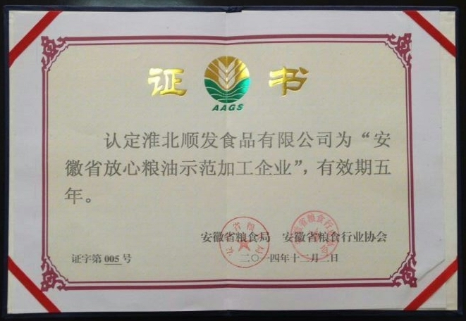 热烈祝贺幸运方便面生产企业被认定为安徽省放心粮油示范加工企业